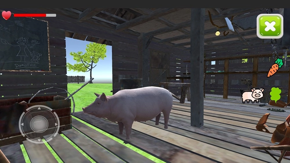 进入游戏后,点击左侧的按钮就能操控猪猪移动啦,你可以在猪舍、户外这些不同场景里开启独属于你的冒险之旅。