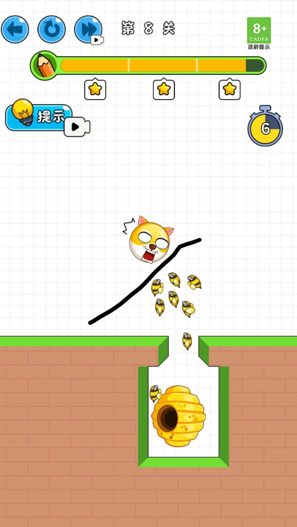 在屏幕上画线,保护狗头避免它被蜜蜂伤害。