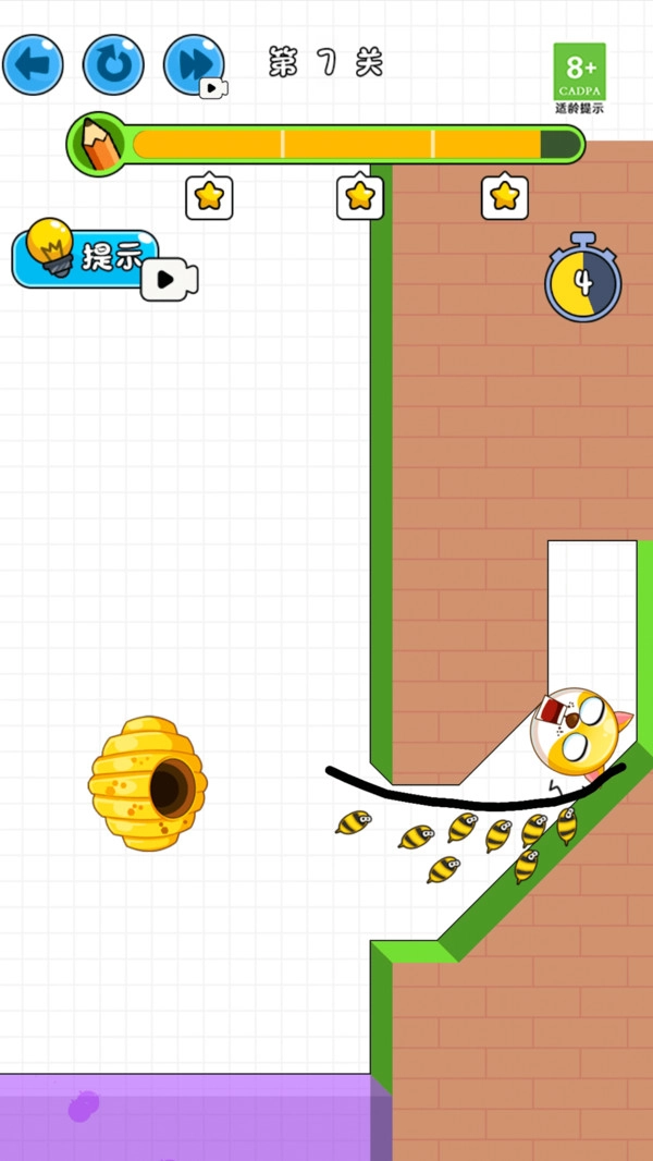 观察关卡布局后,用手指画出引导线,以此保护蜜蜂,避免它们受到尖刺、岩浆等障碍的伤害。