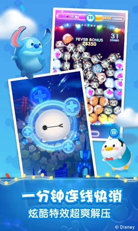 这款游戏包含不少特色玩法,玩家能遇到《冰雪奇缘》中的爱莎与安娜、《寻梦环游记》里的米格和埃克托、《疯狂动物城》的朱迪及尼克、《无敌破坏王》的拉尔夫和云妮等热门动画角色。大家可以和这些角色互动嬉戏,一同探寻奇妙多彩的松松王国。游戏里还有限时连线消除的玩法,能让玩家体验到畅快的解压感受。