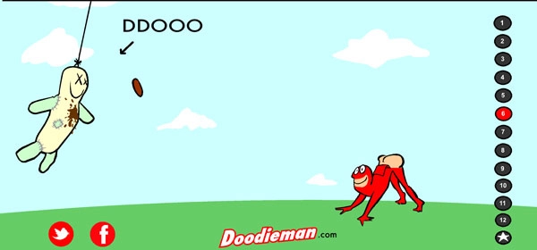 设置完成后,点击右侧标有1到12的按钮,玩家就能操控大便超人向人偶发动大便攻击了。