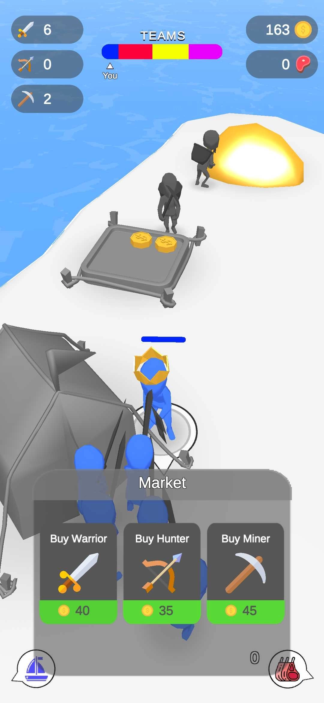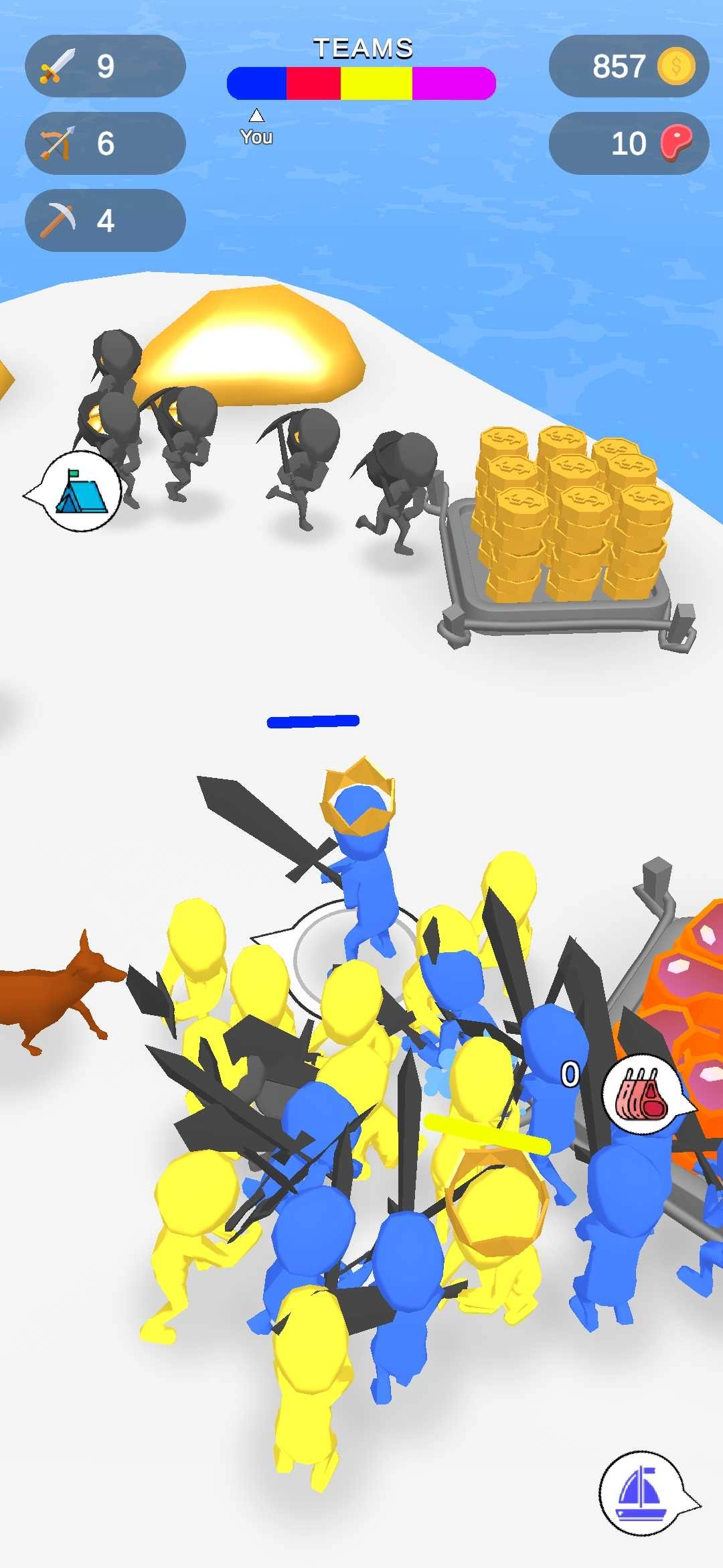 玩家需要击败岛屿各区域的敌人,这样既能扩充团队规模,也能为士兵的武器进行升级。