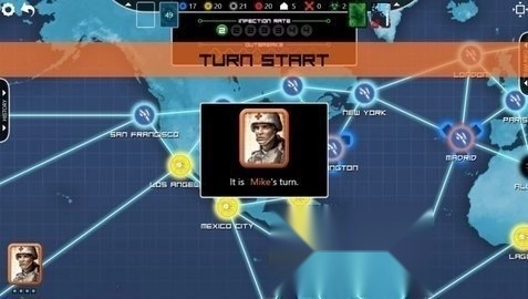 在你的回合结束前,还会有城市遭受疾病侵袭,这或许会引发流行病的扩散。你得全力防止疫情暴发,别让局势失去控制。