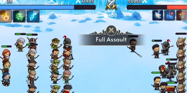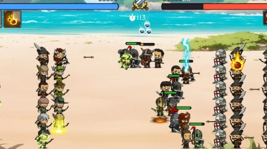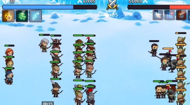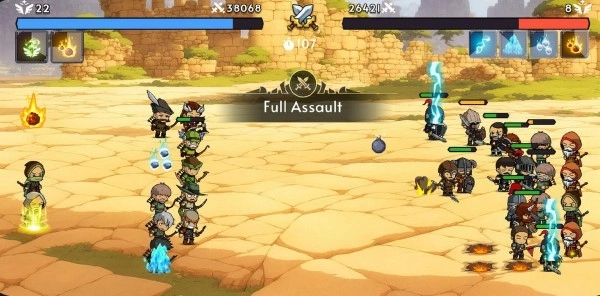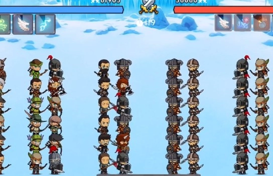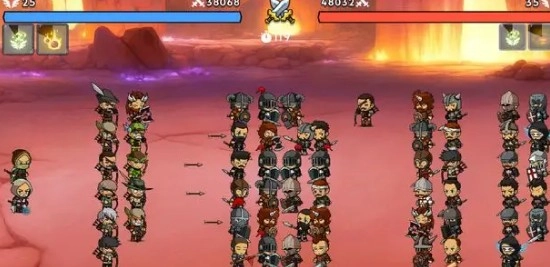 阵型总共划分为三块区域,每块区域包含两排士兵。在战斗的第一阶段,仅第一块区域的士兵会展开对攻;当第一块区域的士兵全部阵亡,或者该阶段的时间结束后,所有士兵便会发起全体冲锋。