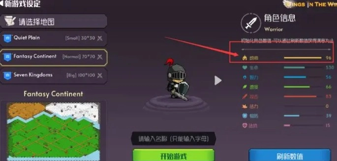 在创建新游戏初始角色时,建议尽可能提升统帅的数值!