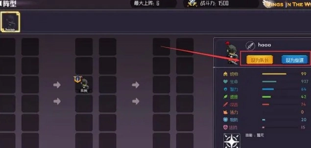 在阵型里安排队长与参谋,能够增强整体的战斗力。队长的统帅能力越强,对提升战斗力就越有帮助。
