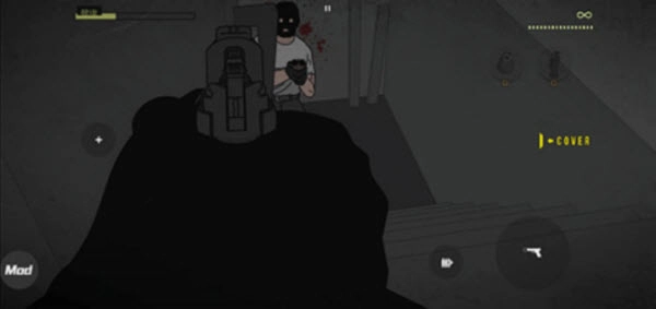 在关卡里,你可以借助下方的按钮来操控角色完成射击、躲避等一系列动作。