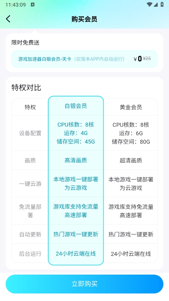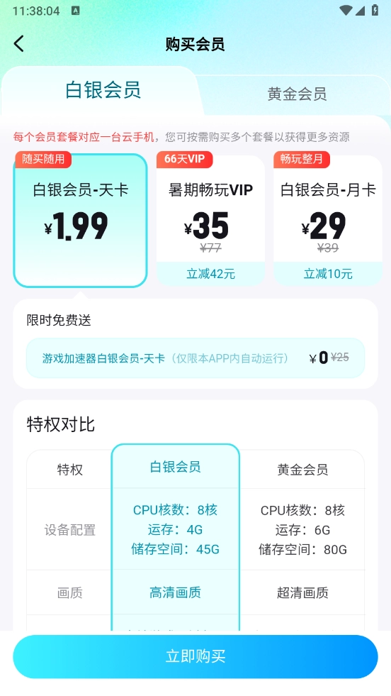 主要区别体现在设备配置与画质方面。白银会员配备4G运行内存和45GB存储空间,支持高清画质;黄金会员则拥有6G运行内存和80GB存储空间,不仅支持超清画质,其CPU性能也更为强劲。