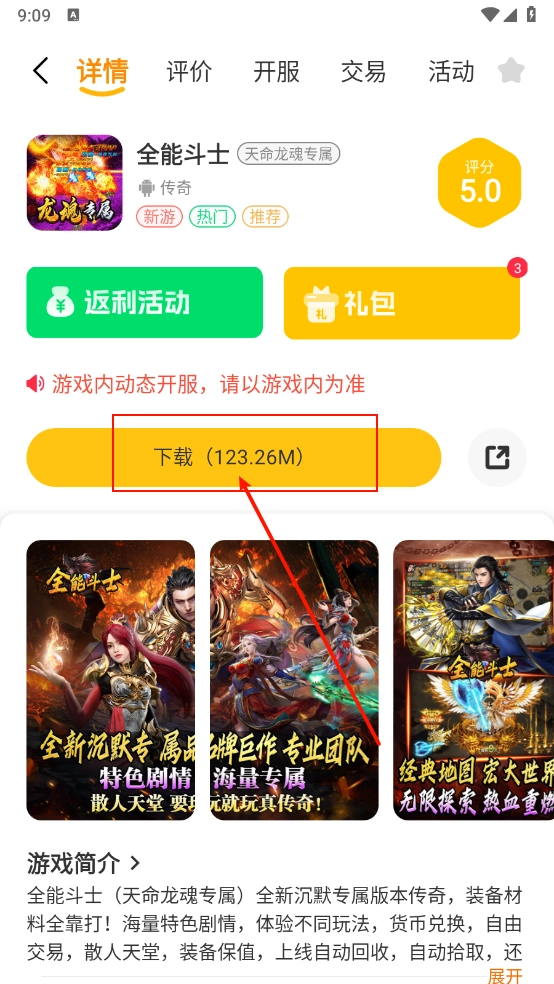 一键点击即可进入游戏详情页面,查看游戏礼包,点击“安装”按钮就能开始体验游戏啦。