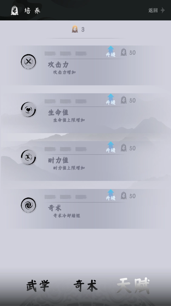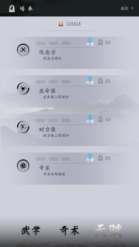 除此之外,我们还可以通过升级天赋来提升自身的各项属性。