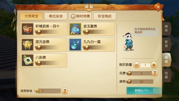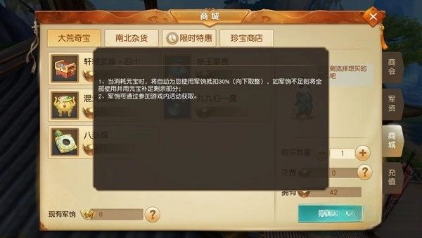 在商城还有个叫做军饷的东西。