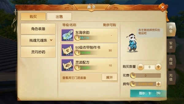 ⑤在商会中购买游戏道具。