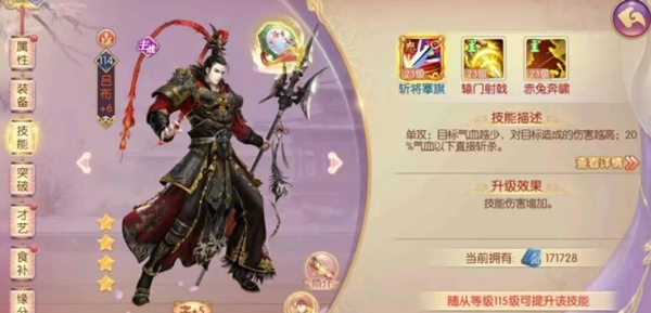 吕布这个随从对技能的依赖度很高:他的怒气1技能能直接斩杀气血低于自身20%的目标;2技能带有吸血效果,能有效为他回复气血、提升续航能力;3技能则是当前版本极为强势的控制眩晕技能,不仅能降低目标防御,还附带75%的眩晕概率,并且可以指定特定目标释放眩晕效果。