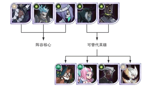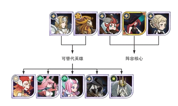 中期我们采用商魅呆阵容,成员包括商人、狮子、呆萌、魅魔(紫品质魅魔就能上场,最好能追至红色品质并达到30专属)以及蝴蝶。其中狮子和蝴蝶可根据实际情况替换为兔弓、骨弓、凤凰、奈拉、三眼、皮帕等英雄。