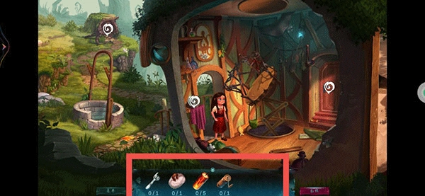 点击那根神奇的豆茎,会了解到需要魔法豆子、蓬松的云朵以及长笛;点击右侧的大树,能知道需要青蛙;点击女孩身旁的小红花,便知晓需要森林仙子。