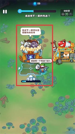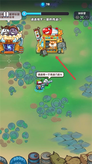 购买完道具后,移动至传送门,等待传送进入关卡。