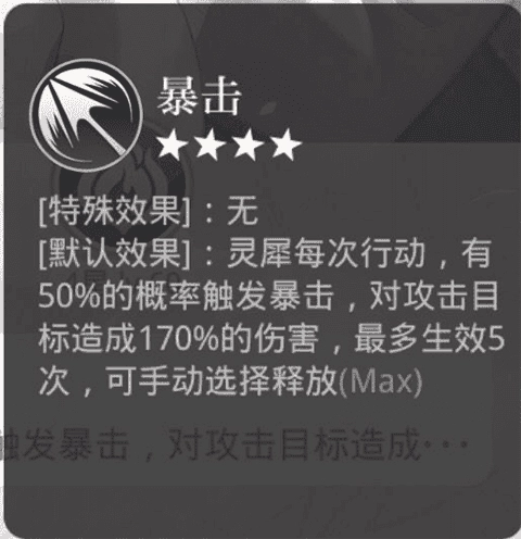 暴击:单次百分比暴击效果,以概率形式触发,每局游戏中最多可触发5次。