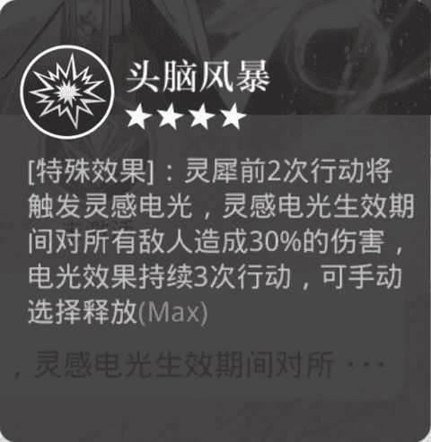 头脑风暴:群体伤害效果,持续作用3个回合,触发概率为100%,每局游戏内最多可触发2次。