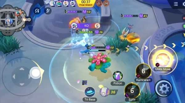 这款游戏和传统MOBA有相似之处,采用5v5的对战模式,比赛时长是固定的,胜负取决于双方在10分钟内积累的分数,分数更高的一方获胜。玩家可以通过击败野区的野生宝可梦或者对方的宝可梦来获取可携带的分数,之后需要把这些携带的分数送到对方阵营里,这样才能转化为团队的总得分。无论是上交分数还是击败其他宝可梦,都能让玩家获得经验值,随着经验值不断累积,玩家使用的宝可梦就能升级进化,还能学会赛前就设定好的新技能。