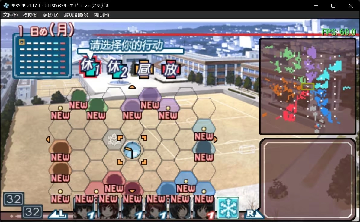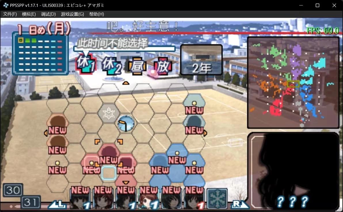首先在设置好名字、完成序章后,会出现这样的界面(序章的三个选项没有区别,任选其一即可)。不过要是你初次游玩,界面上应该不会有这些颜色方块——它们对应着不同女主的事件,而右上角的地图则会显示当前的进度。