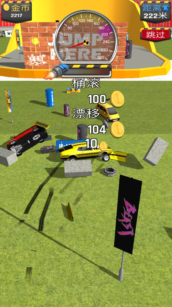 从陡峭的滑道全力冲刺,让你的汽车滑翔得更远,抵达关卡终点,解锁更多关卡与场景。