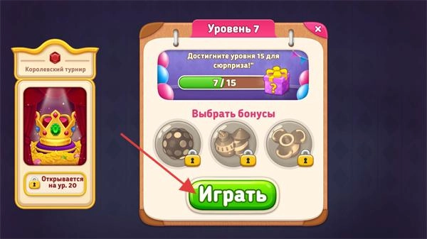 在【Уровень-7】界面点击【Играть】,目标是收集15个装饰,目前进度为7/15,现在开始新关卡。