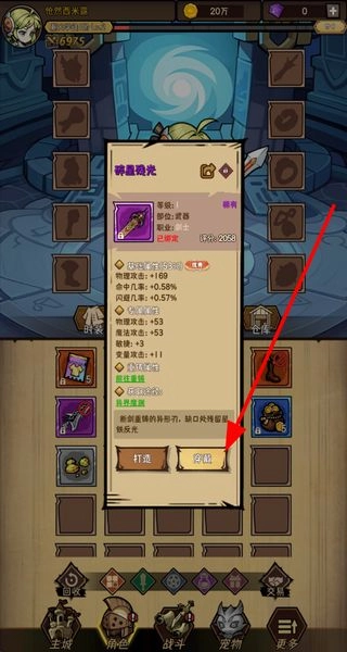 进入角色界面查看已获取的装备,选中装备后点击穿戴按钮,即可为角色更换该装备,从而提升角色的属性。