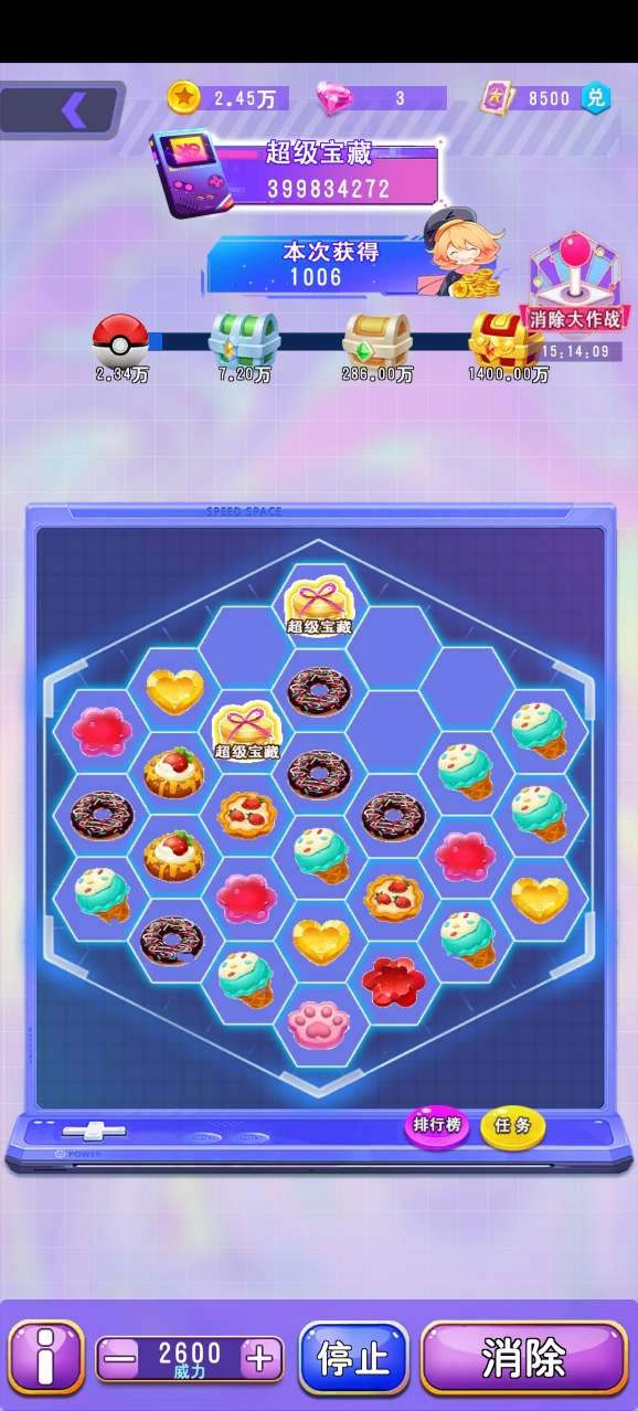 关卡创新: 每一个关卡都具备独特的难度设定与任务要求,玩家通过消除图案来获取道具或是达成特定目标,需要灵活运用限定的步数或时间来迎接挑战,以此维持游戏的新鲜感与挑战性。