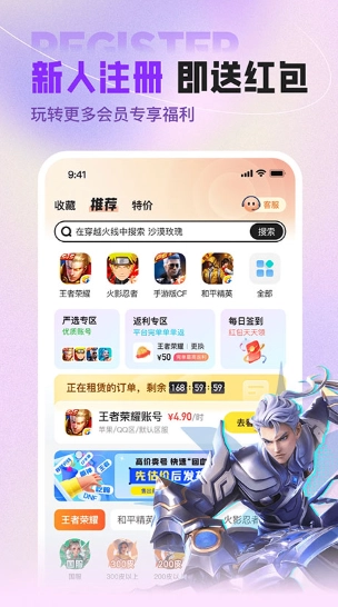 拥有账号后,你就能进入“闪租”中心,快速在线挑选心仪的账号。