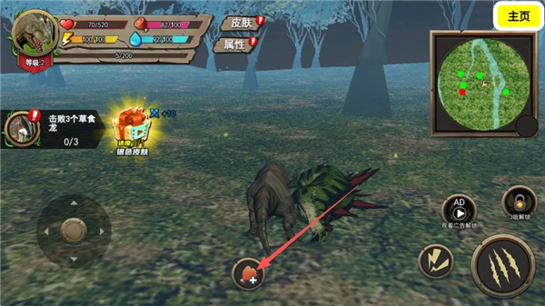 当你成功击杀其他恐龙或生物后,点击“进食”按钮,就能吃掉该生物,从而获取额外的经验与奖励。
