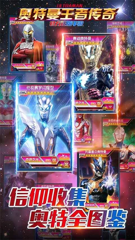 可以通过升级、装备配置、技能强化等多种途径培养各类奥特曼,组建独具特色的专属战队。
