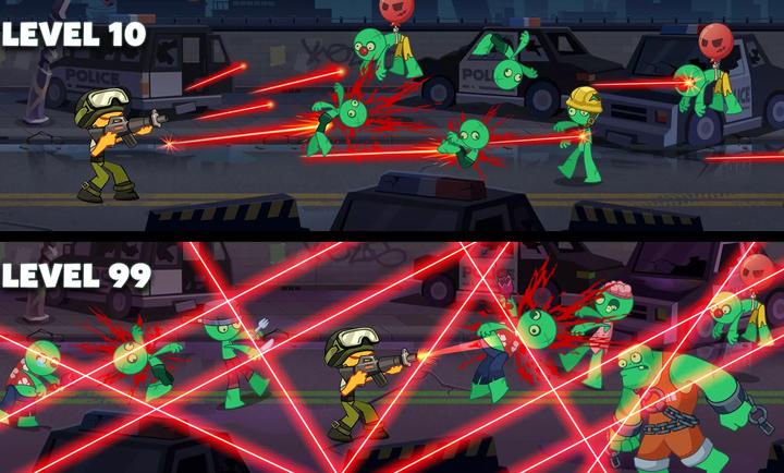 游戏设置了完善的角色成长体系,玩家既能通过召唤传奇英雄提升自身战力,也可搭配不同的武器与技能组合,以此应对多样的敌人和挑战。游戏里的每场战斗都存在诸多不确定性,玩家必须依据战局的实时变化灵活调整策略,方可在这个危机四伏的世界中存活。游戏的视觉风格别具一格,火柴人造型与僵尸、外星生物的对抗产生强烈反差,让战斗场景更具趣味性和生动感。