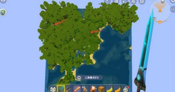 1、第一步,玩家得先切换至编辑模式,随后借助系统自带的飞天功能,攀升到海拔100米的高空,此时玩家便能清楚地看到,在大片的绿植之中,会分布着几处较为醒目的灰色区域。没错,这些地方正是神像所在的位置。