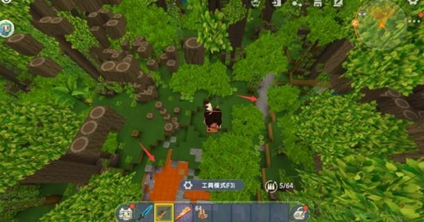 2、接下来,等小伙伴们飞到灰色区域后,就可以开展寻找的第二步——识别特征。遗迹周边通常会有一些特殊标识:其一为岩浆,新神迹是个有趣却危机四伏的地方,而岩浆作为迷你世界里标志性的自然伤害元素,是许多危险区域周边的特有元素,新遗迹自然也不例外;其二是大坑,新遗迹触发的新神庙设有地下一层,因此遗迹附近往往会出现一些大坑。所以,小伙伴们在地面看到大坑或岩浆时,就说明遗迹就在附近了。