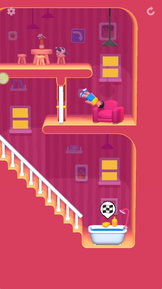 2、引导角色在安全路径上移动,利用触碰墙壁产生的反弹效果,穿过各种物体,快速到达终点。