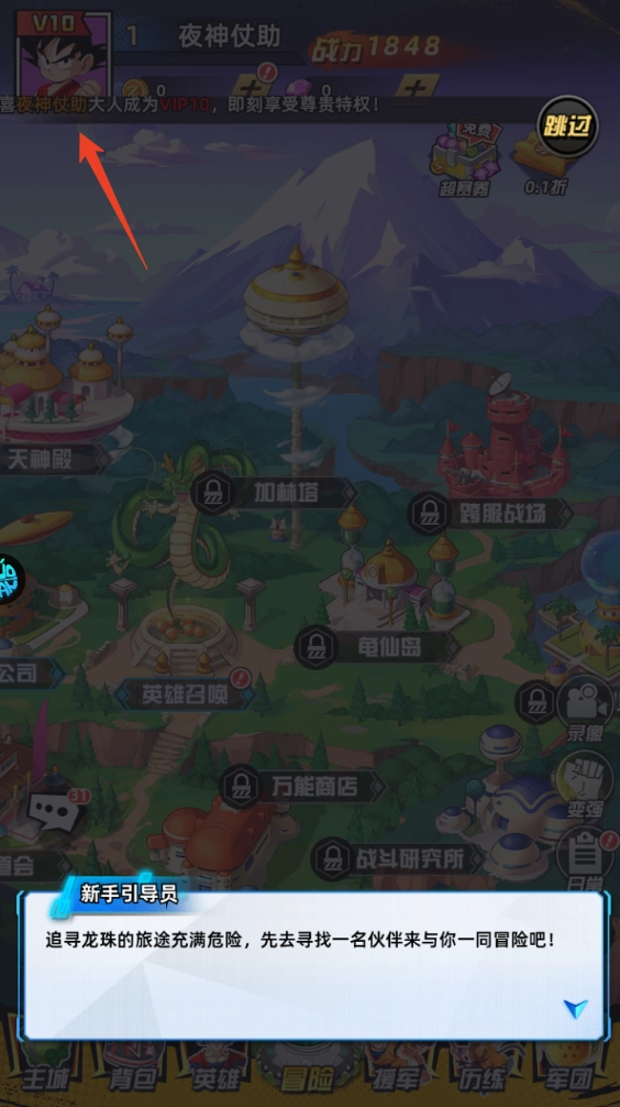9、要是中途玩家不需要再接受引导了,点击右上角的跳过按钮就行。