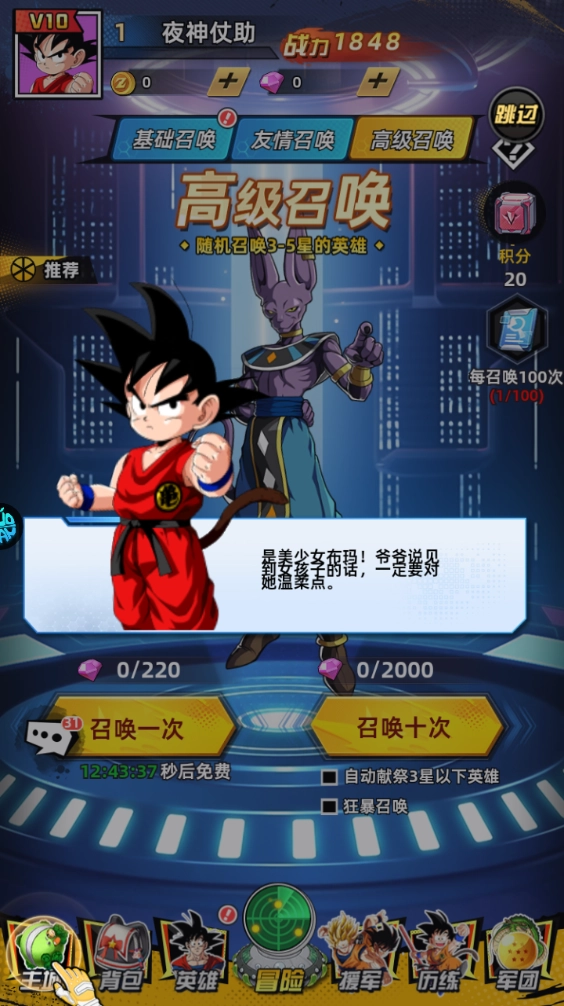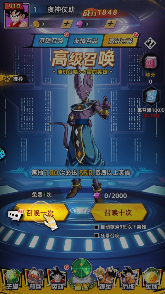 3、接下来我们召唤一位伙伴一同开启冒险之旅,点击英雄召唤按钮即可。