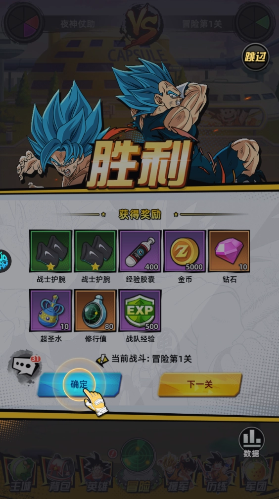 12、战斗获胜能拿到丰厚奖励,点击确定,接着开启后续的冒险吧!