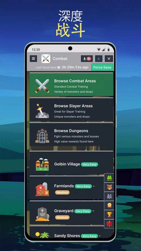 梅尔沃放置(Melvor Idle)以RuneScape的世界观构建游戏基底,其兼具深度与无限延展性的战斗系统,包含8种独特技能可供解锁;游戏内还有海量副本与首领等待挑战,以及围绕这个世界展开的深刻叙事。游戏系统在内容丰富的同时保持了易上手的特性,能让玩家沉浸其中,此外还提供15种非战斗技能供训练,每种技能都有独立机制,且技能间存在交互联动。完整的仓库与物品栏系统可助你追踪超1100种物品的状态,另外还有40余种萌趣十足的宠物等待收集。得益于持续稳定的更新支持,你的冒险之旅将永不落幕!
