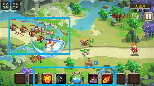 《塔防西游记》以中国古典名著《西游记》为创作蓝本,玩家可化身唐僧师徒或西游使者,在漫漫取经途中布设防御塔,阻挡妖魔鬼怪的侵扰。游戏采用Q萌的美术风格与唯美的场景设计,还原了花果山、龙宫、天庭等经典地点,同时融入“三打白骨精”“智取芭蕉扇”等原著经典剧情,使玩家在策略塔防的游玩过程中重温西游传奇故事。