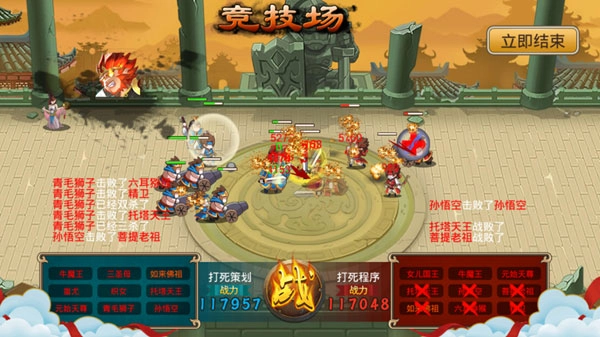 【战况4】得益于无敌buff的存在,对方女儿的技能落空后,我方织女立刻释放技能,将对方全体仙将的血线大幅压低