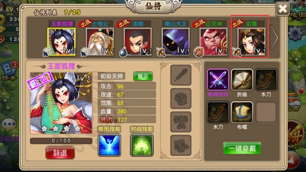 5、在仙将处可为仙将穿上装备。