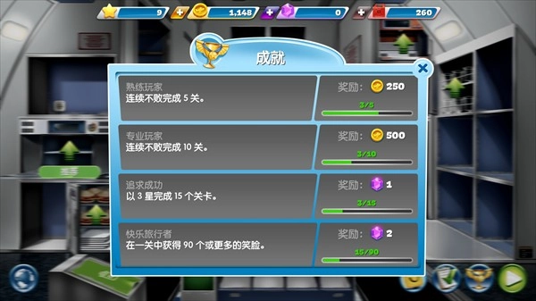 5、游戏设有关卡系统,玩家每通过一个关卡都能得到金币奖励,这些金币可以用来升级客舱里的各项设施。升级设施后,不仅能提高收入,还能让餐点制作时间变得更短,从而提升整体运营效率。