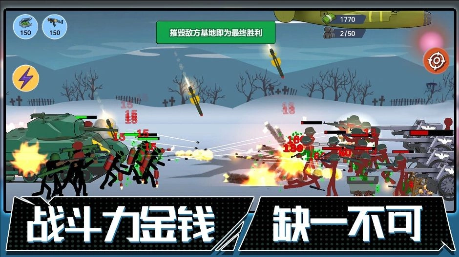 1、以火柴人世界为背景,融合策略塔防与即时战略元素,指挥军队守卫部落、拯救家园。
