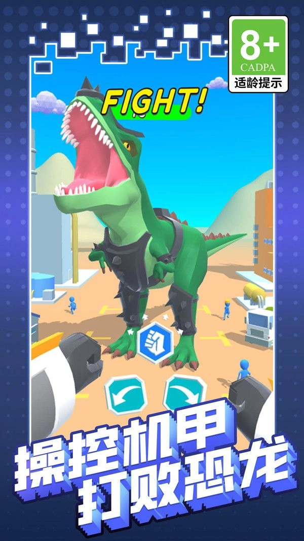 2、灵活操控你的机甲战士,躲避恐龙的袭击,坚持到底,不要轻易放弃。