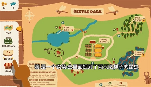 1、直接进入游戏,在地图里挑选一个地点,像农场这样的地方,就可以去捕捉各种各样的昆虫了。