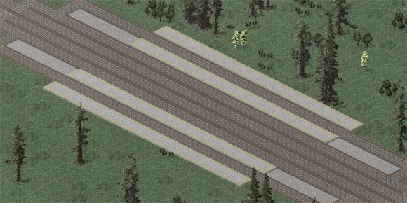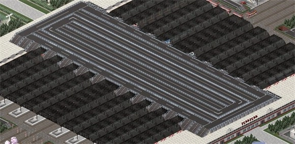 3、铁路铺设完成后需设置站台,通常火车站的站台长度在16格左右即可满足需求,超大型火车站的站台最长不超过27格,再长便不符合实际情况了。