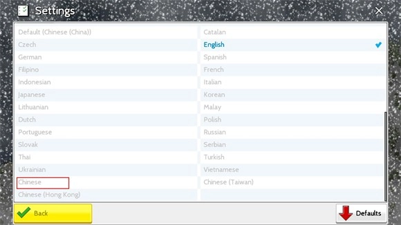 4、接着在选项栏中找到并选择Chinese,这样就能切换成中文了。