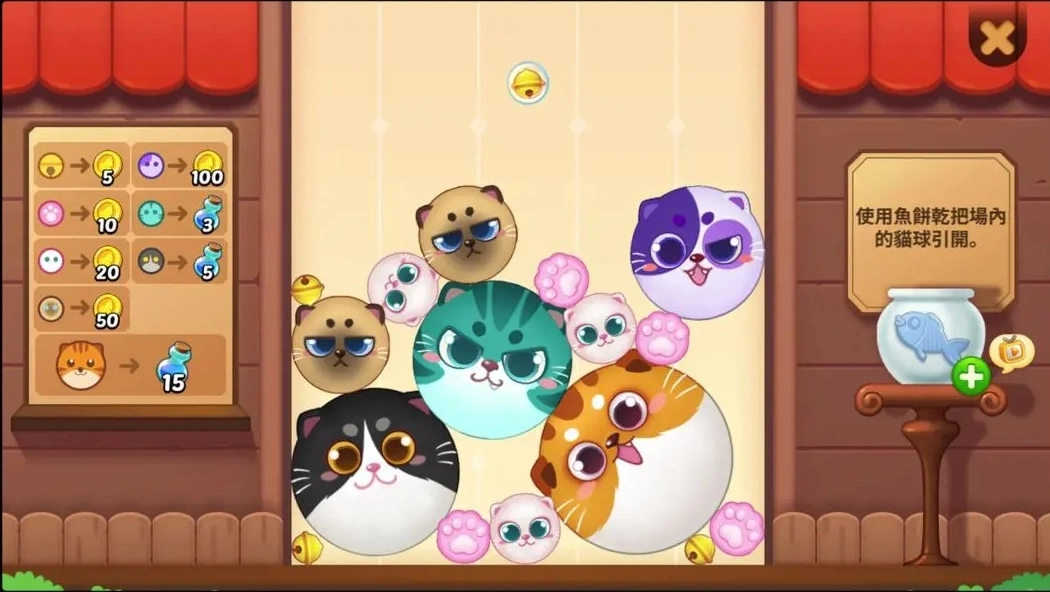 当猫球堆积溢出,触及最上方的“红色警戒线”时游戏即宣告结束,最终奖励将依据游戏界面左侧的「奖励兑换规则」进行结算。