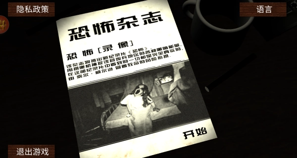 1、安装并启动游戏,进入一个充满恐怖氛围的场景,开启你的冒险之旅。
